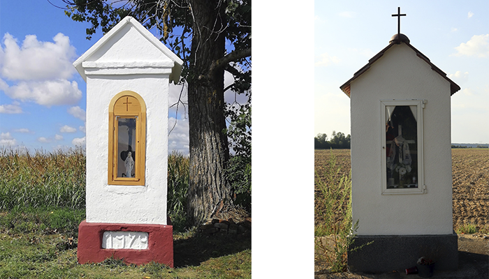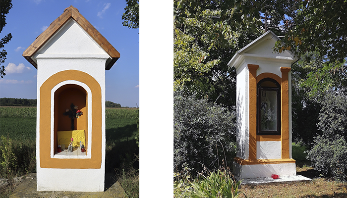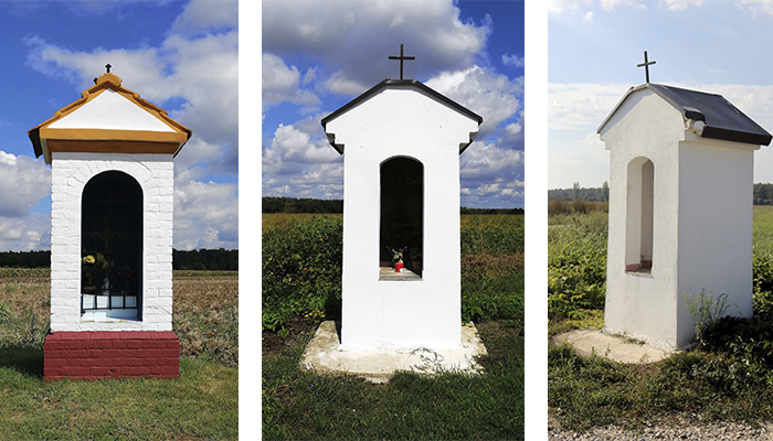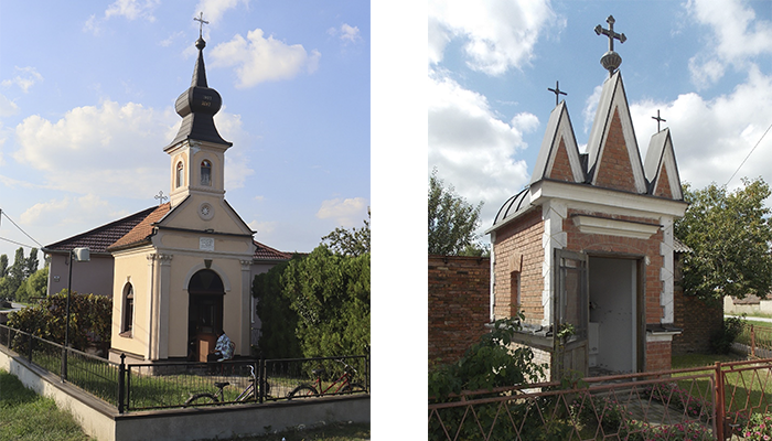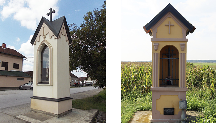 U naseljima, najčešće na križanju ulica i uz glavne poljske puteve (lenije) u općinskom ataru nalazi se desetak kapelica. Sve su građene od opeke, a nekoliko većih u oba naselja odlikuje se posebnim stilskim obilježjima.